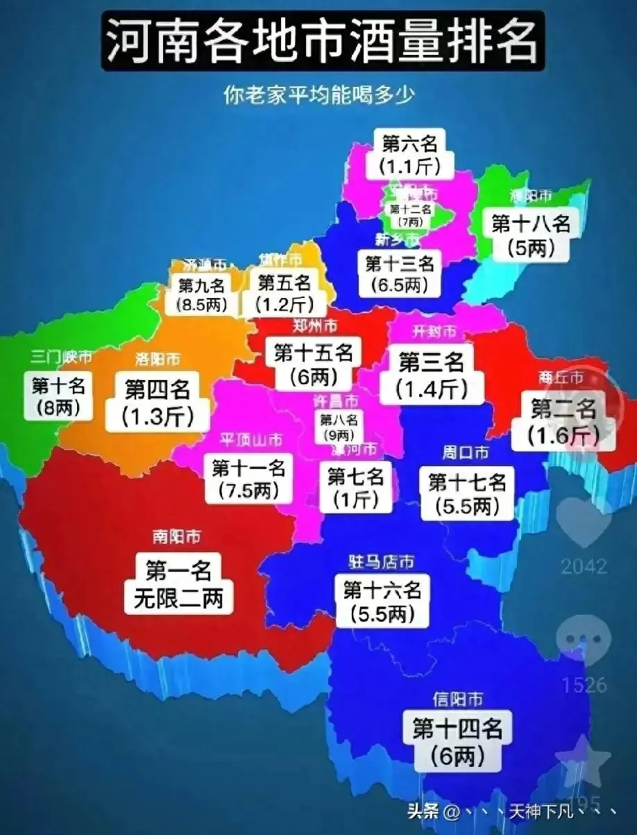 最近,在網上看到河南省各市酒量排行榜,不一定準確,南陽竟然拔得頭籌,占據榜一,作為一個南陽人,我是深有體會啊!