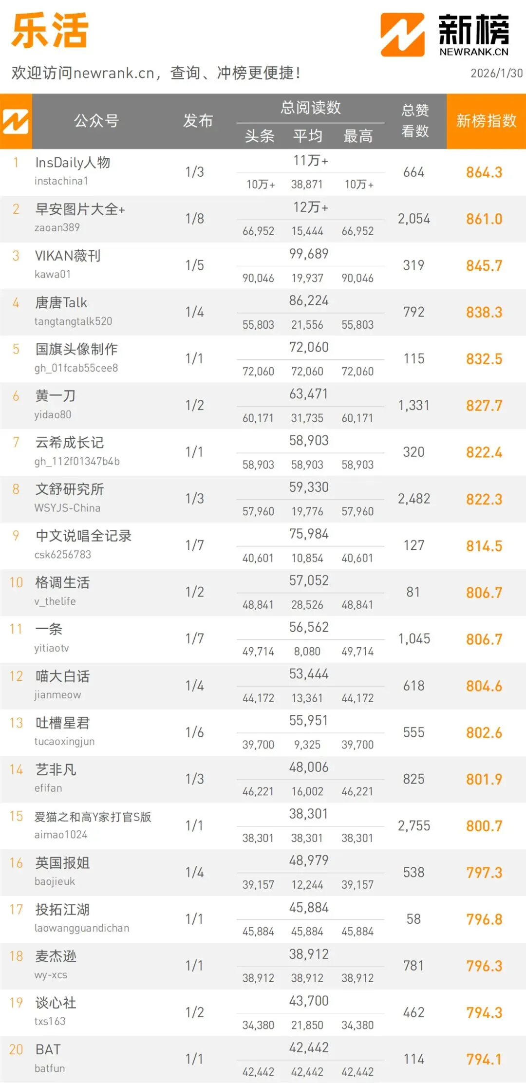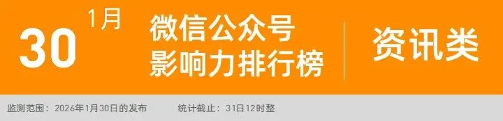 1月30日微信公眾號(hào)影響力排行榜 | 新榜發(fā)布