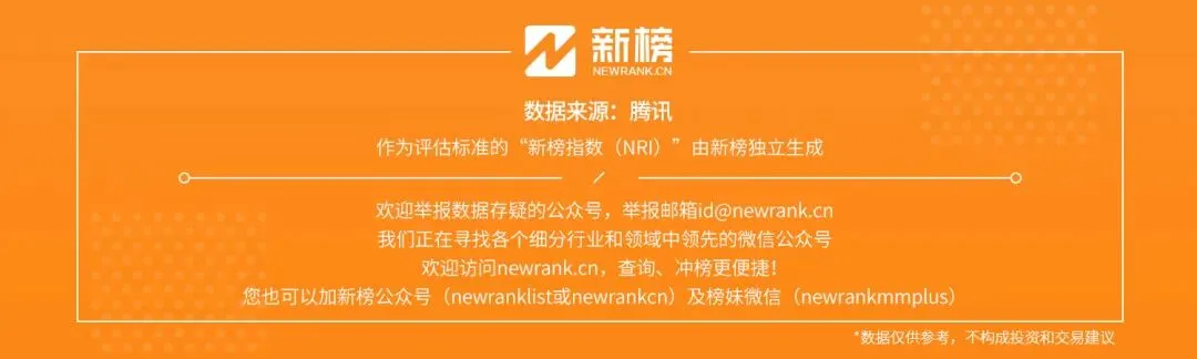 新榜榜單小程序版正式上線,榜單想看就看,更多熱門(mén)內(nèi)容也可登錄新榜網(wǎng)站www.newrank.cn進(jìn)行查詢,點(diǎn)擊「閱讀原文」查看新榜指數(shù)算法說(shuō)明。