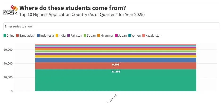 近日,馬來西亞教育全球服務中心(EMGS)發布了2025年全年國際學生申請統計數據(截至第四季度)。
