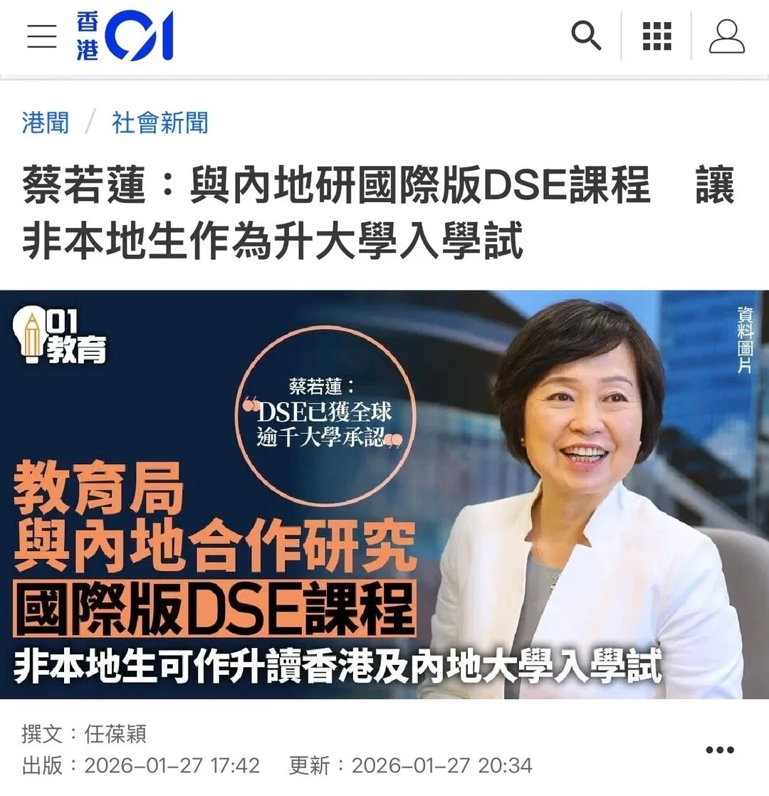 香港DSE考試已獲全球超千所大學認可,本地學生海外升學暢通。為進一步推動“留學香港”與“留學中國”,香港正與內地合作研究推出“國際版DSE課程”。