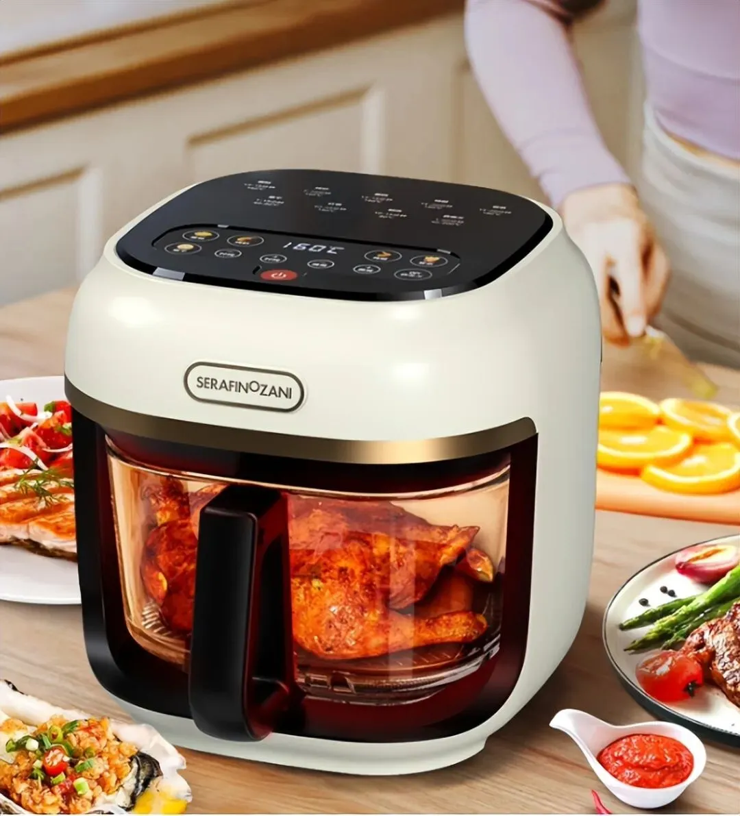 ?實測效果:可視化窗口便于精準把控烹飪進度,避免過度加熱;多模式切換可滿足不同食材的制作需求,例如烘焙蛋糕時溫度穩定,炸制薯條時受熱均勻;炸籃拆卸后清潔無死角,日常維護難度低。