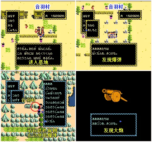 34.站在村外右側的巖石的右側使用爆彈(須攜帶火藥),發現大炮。