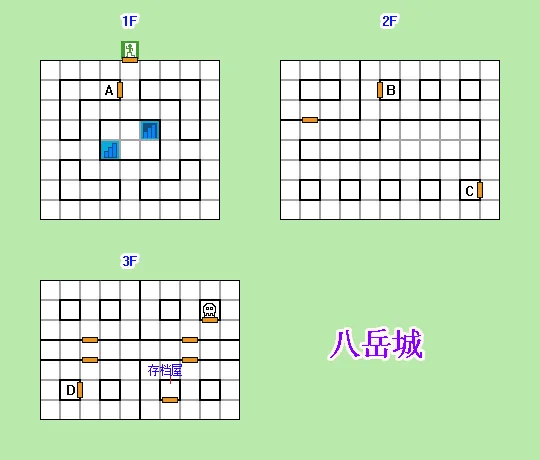 入口位于1F北面,進入北面中間的房間A;