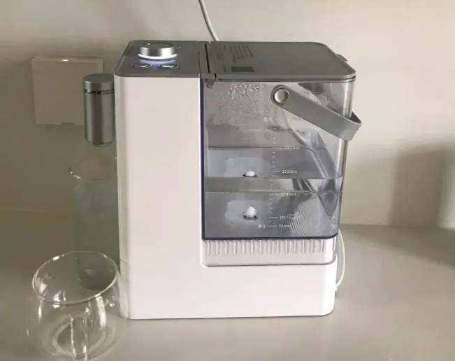 網易嚴選即熱式飲水機將過濾系統與加熱模塊結合,可對進水進行凈化。水溫調節范圍較廣,屏幕在暗光環境下也清晰可見。機器具備自清潔模式,并在需要更換濾芯時給出明確提示。整體維護較為方便。