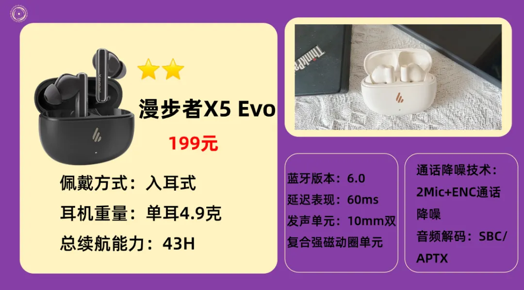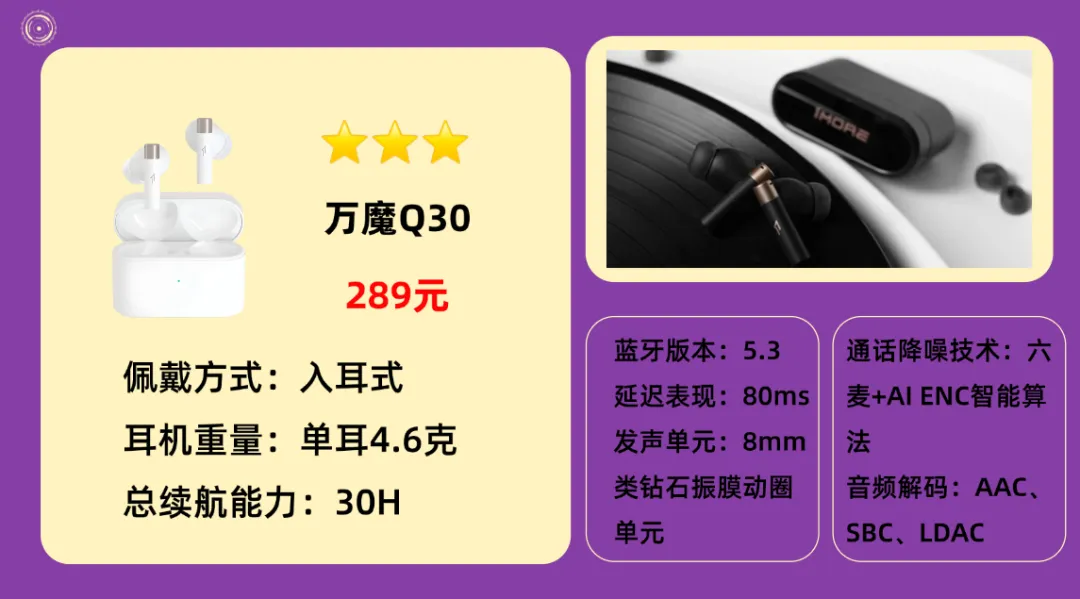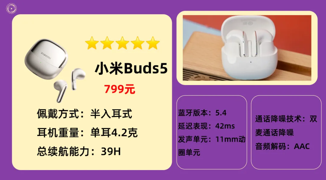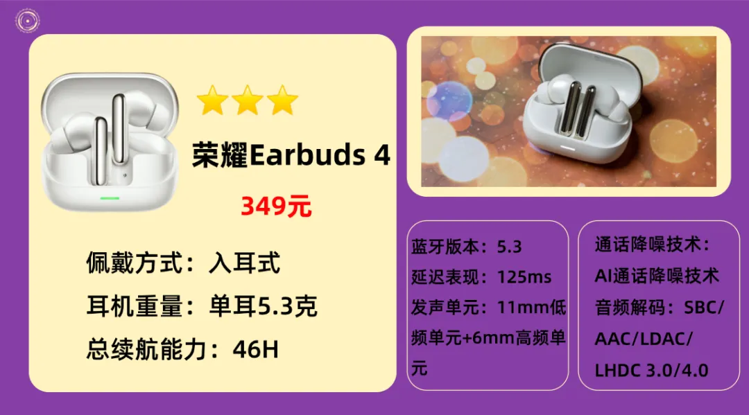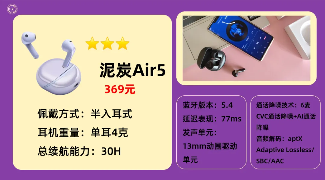 這款耳機的佩戴體驗以“輕巧無壓”為主打,半入耳結構貼合自然,久戴也不容易脹痛。日常使用沒問題,但如果跑步或劇烈活動,穩定性會略有下降。外觀共有白、黑、紫、米金四種配色可選,整體設計干凈利落。IP54防塵防水加持,出汗、通勤、偶爾的小雨天都能應對。