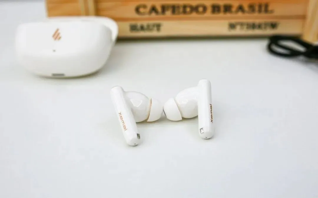 耳機珠光白版的外觀比較時尚,磨砂與亮面拼接的設計在光線下能折射出細膩的珠光感,拿在手里像一件小首飾。耳機采用半入耳式結構,單耳僅5.3g,佩戴輕盈且貼合度高,即使連續使用兩三個小時也不會有壓耳感。