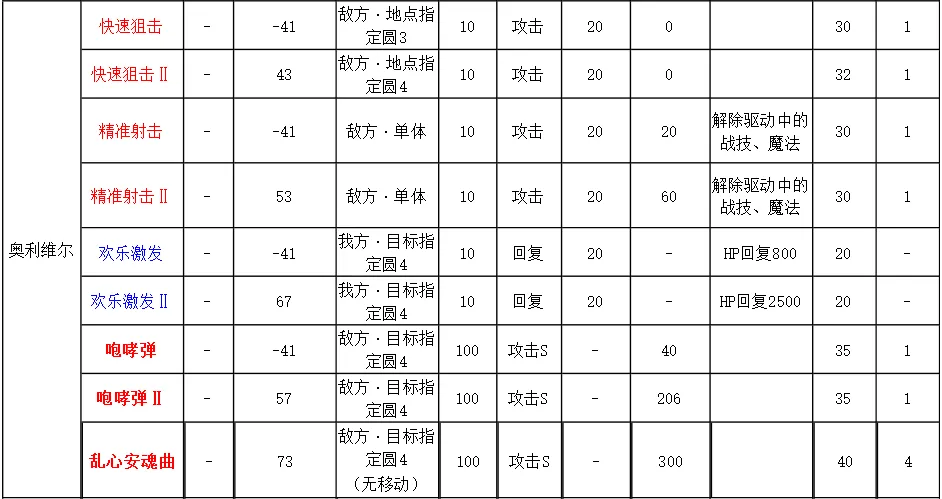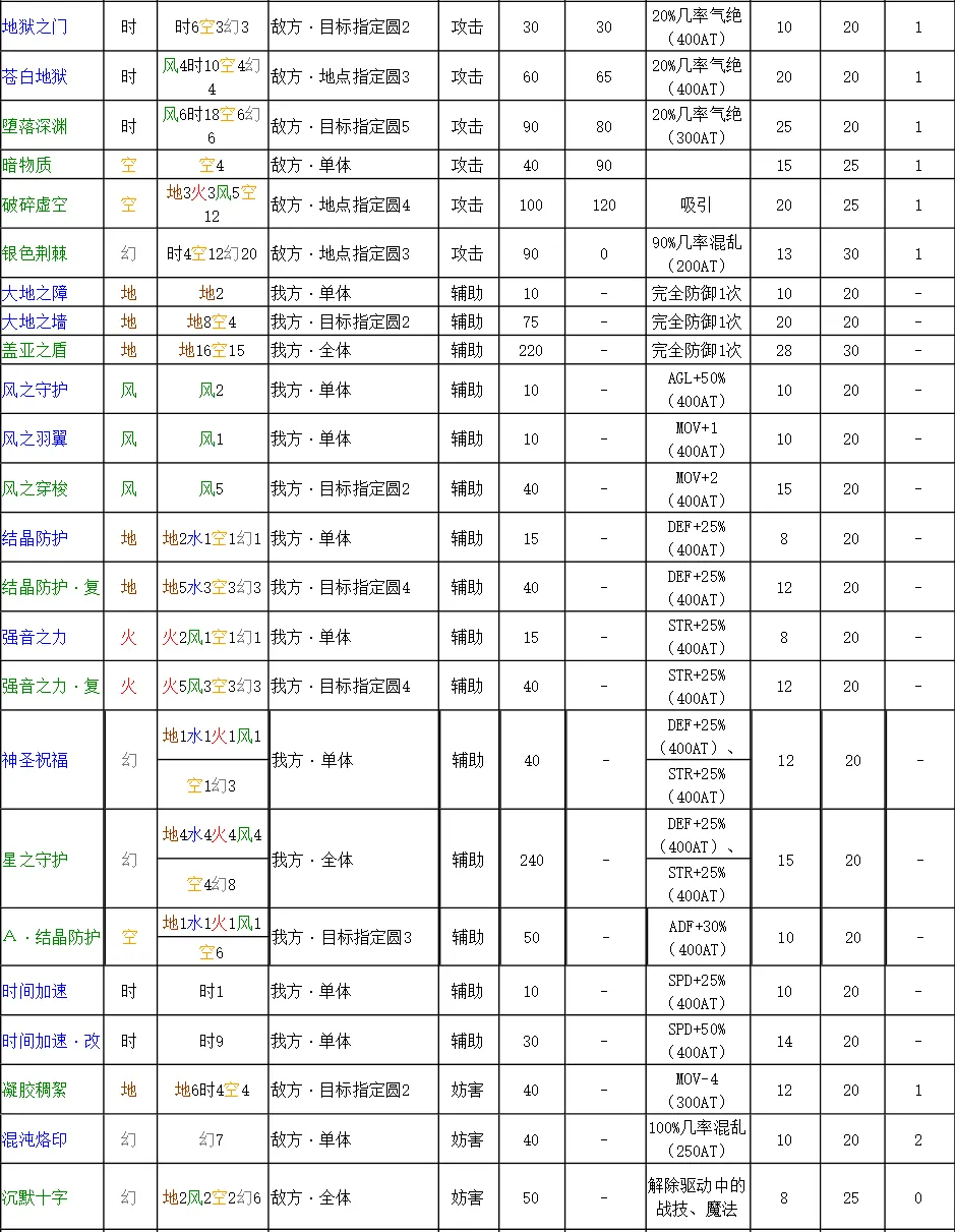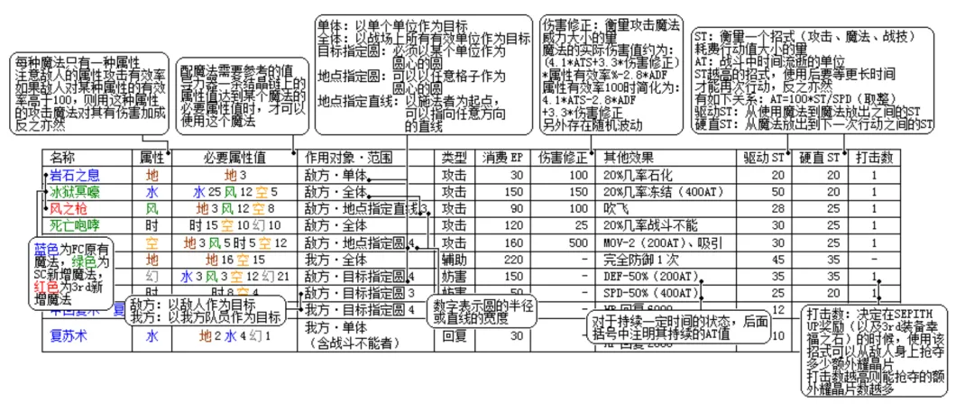 空之軌跡SC 魔法詳細數據表