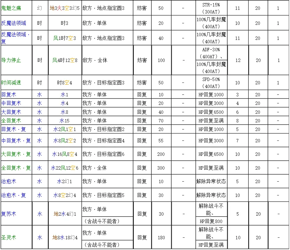 魔法表說明