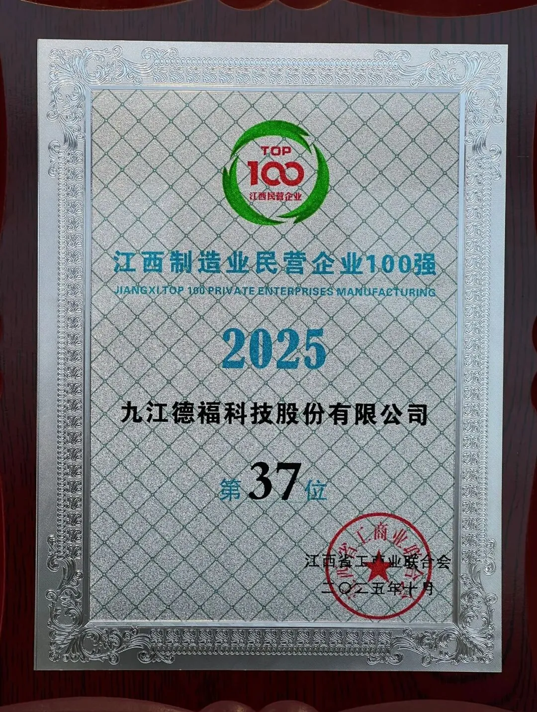 1月30日上午,九江市工商聯專職副主席陳敏蒞臨九江德??萍脊煞萦邢薰荆ㄒ韵潞喎Q“德??萍肌保?,舉行授牌儀式,向公司授予“2025 江西民營企業100強”(第52位)和“2025 江西制造業民營企業100強”(第37位)兩項重磅獎牌。德福科技副總經理范遠朋代表企業熱情接待并接受授牌。