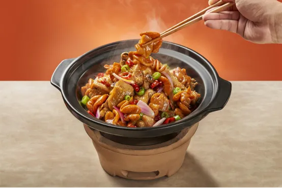 定位精準,直擊剛需痛點:作為一人食雞公煲的開創者,渝八兩打破了傳統雞公煲“多人共享”的場景局限,創新推出“一人食雞公煲”產品形態,將客單價合理鎖定在19-34元區間,精準貼合白領、學生、單身人群等核心消費群體的高頻剛需。與此同時,品牌全面覆蓋“午餐+晚餐+夜宵”三大核心消費時段,午餐時段滿足上班族便捷、高效的用餐需求,晚餐時段承接家庭簡餐的便捷消費場景,夜宵時段則憑借麻辣口味的“成癮性”吸引夜貓子群體,單店日均翻臺率超過12次,坪效表現遠超傳統快餐品牌。
