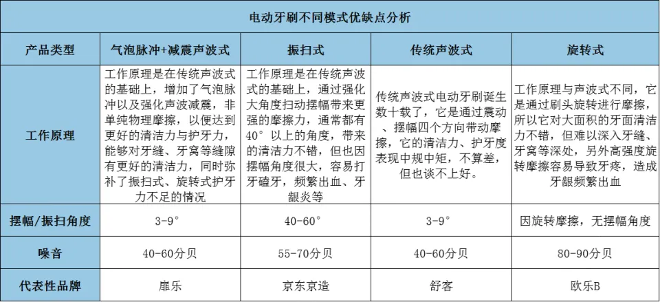 為方便大家理解,現對4類主流電動牙刷的特點進行簡明匯總: