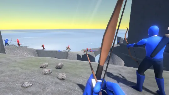 你能拿著刀劍盾牌沖鋒,也能拉弓射箭、甩魔法咒語,甚至駕著披甲戰馬、騎巨龍在天上飛。最有意思的是布娃娃物理效果和可破壞環境,看著機器人大軍在戰場里亂撞、建筑被砸得稀碎,代入感直接拉滿。