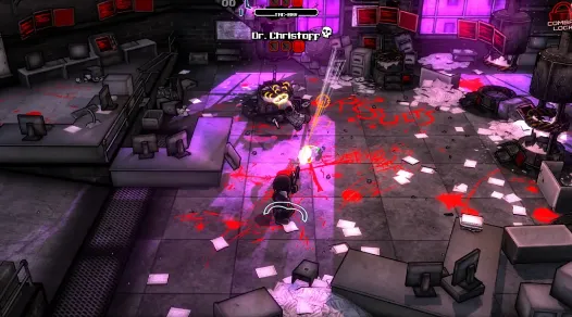 第三人稱射擊+清版動作,街機風格的打斗配上暴力元素