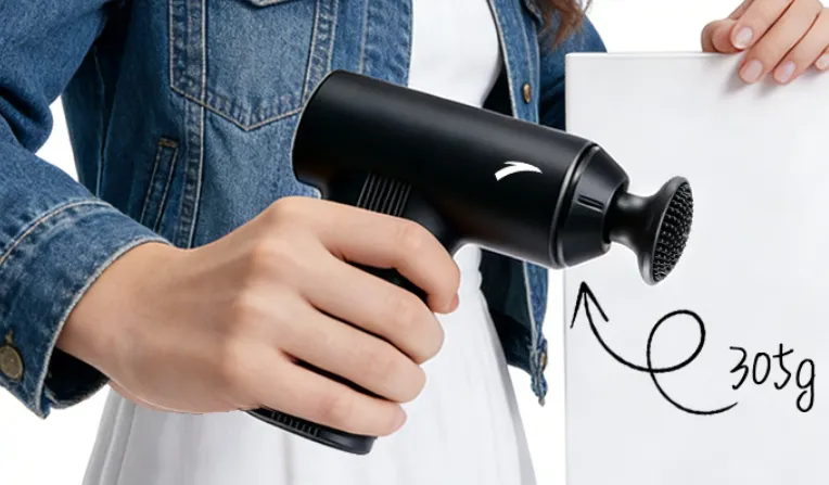 380g機(jī)身配90°直角把手,重心前置設(shè)計(jì)讓發(fā)力線沿虎口筆直延伸,動(dòng)力折損低。低頻段震頻穩(wěn)定在1800轉(zhuǎn)左右,按摩頭橫向擺幅肉眼難察,抵住斜方肌下緣能死死咬住附著點(diǎn),不飄不移。傳動(dòng)結(jié)構(gòu)做減法,硬連接讓震頻傳遞更直接,擊打軌跡如尺規(guī)作圖。