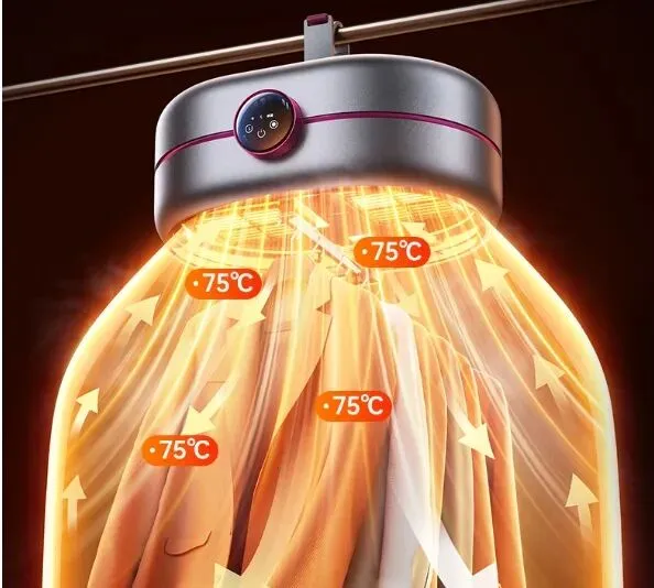 ②技術特點:該產品采用熱風烘干技術,升溫有固定節奏,可逐步蒸發衣物水分,避免衣物長期潮濕產生異味,滿足日常干衣需求。
